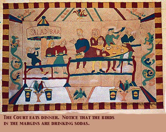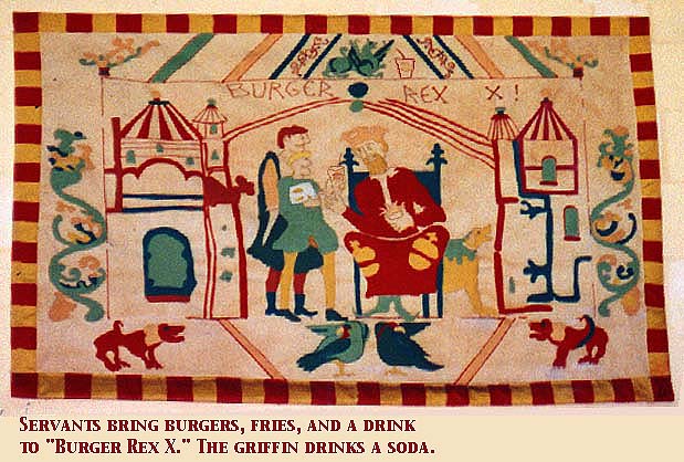 As we were returning from Carolingia's "Party at Herot" event in March 2001, we decided to search for the best of Burger Kings. I had happened upon it by accident some months previously, and the four of us were in the mood for a Quest. Our party was four: Sir Mord the Green, Baroness Mairi ni Raghaillaigh, His Lordship Francois Thibault, and myself, Baroness Cynthia du Pré Argent.
