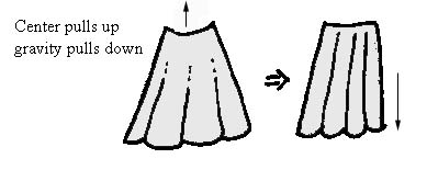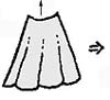| The folds of the full skirt head toward the waistband, because it is there that the center of the piece of fabric is lifted up relative to the rest of the fabric. The folds go towards the straightened curve. | ![]() |