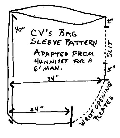 | Here's the sleeve pattern for the man's houp; it is based on Hunnisett's bag sleeve, but with two major changes. See this subsidiary page about bad bag-sleeve patterns. | ![]() |