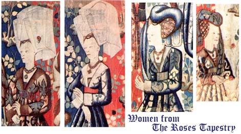 | Stuffed fabric (supporting classic stuffed roll; underpinning) | Women's "chaperon" type hats were said to be stuffed with hair. No extant items of this sort. | Easy to make; cheap, lightweight | The bonnet shape collapses under the weight of a stuffed roll, tall veils and wires, long pins, dags. |