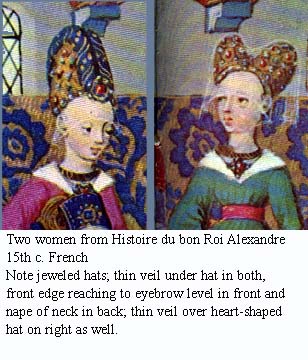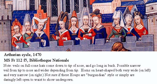 Veil of very thin fabric, draped over horns, or horns have skirt of