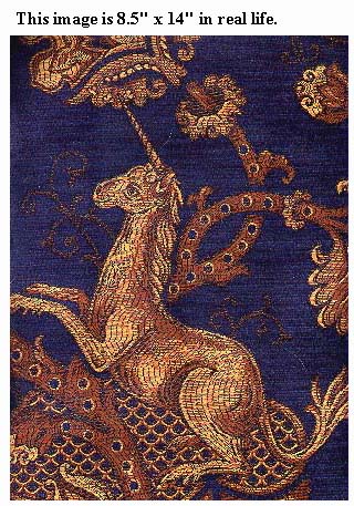 piece of christmas wrapping paper that is the Mon Seul Desir tapestry,