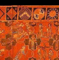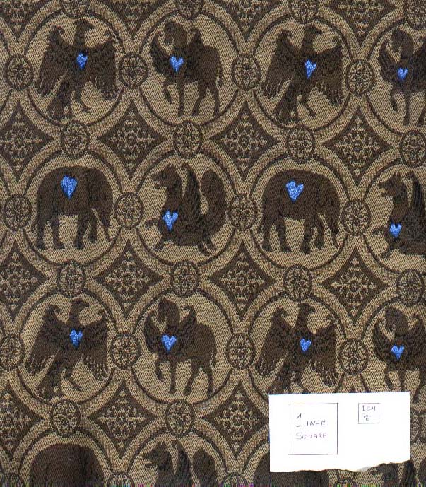 of modern fabrics that are similar to known medieval fabricsThis is intended to assist others in choosing patterned "medieval-oid" fabrics from fabric stores, upholstery stores, or any other source, such as thrift stores. This doesn't cover the plainer fabrics, such as wool, linen, hemp, and the known blends in period. Remember that in the middle ages, the rich folks wore patterns! Fancy printed linen! Gold cloth with velvet motifs! Damasks and silks and embroidery!