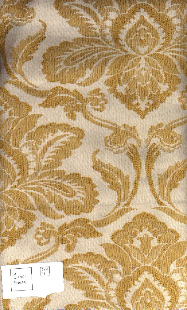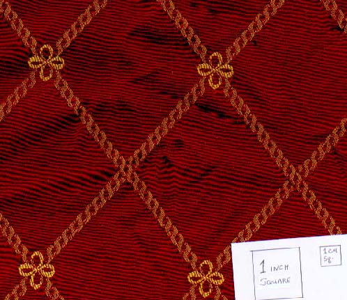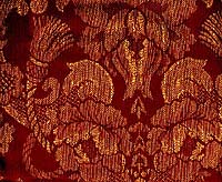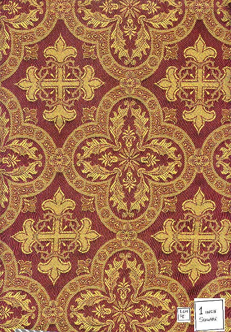 Burgundy and gold ecclesiastical brocade, rayon, La Lame and other sources, $15/yd. | ![]() |