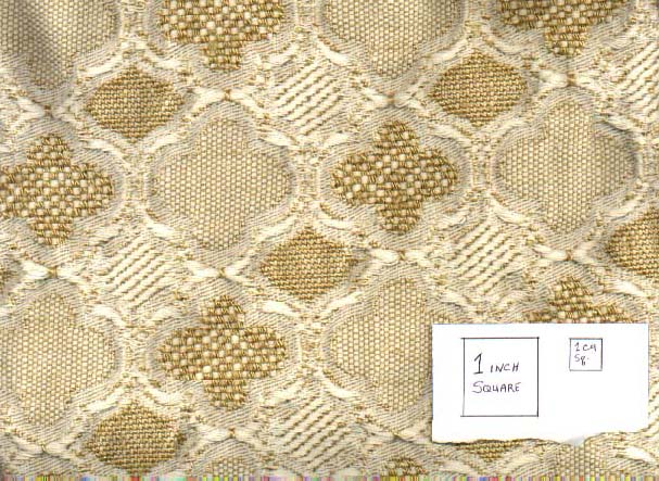 Neutral quatrefoil upholstery fabric from Stone Mtn & Daugher, CA. $10/yd? | This one is more "oid" than some of the others, but has the right flavor. |