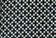 Blue checked fabric, nylon. $2/yard in bargin bins at JoAnn's Fabrics -- comes in many colors. Great for banners. | Easy and regular pattern to weave; opposing direction twills make the squares reflect brighter or darker. |