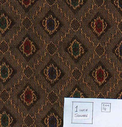 Brown lozenge pattern with centers of red, blue, and green, cotton upholstery fabric remnant, less than $10/yd. | 1300-1400s