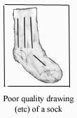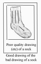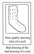 Once dubious quality is put in the equation, subsequent generations will be unlikely to regain quality, so even an excellent copy of a bad drawing will itself be a bad source. Of course, a bad copy of a bad drawing of the original sock can get worse yet!