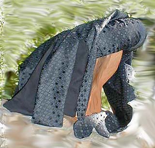 The skirts and liripipe are one long cone shape, as diagrammed at the bottom of the men's stuffed hats page. |