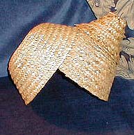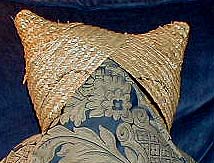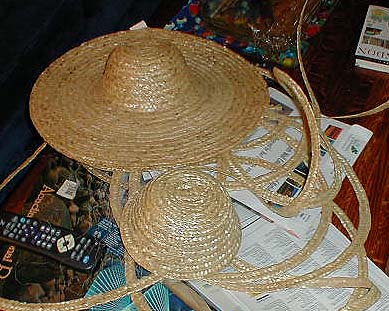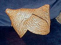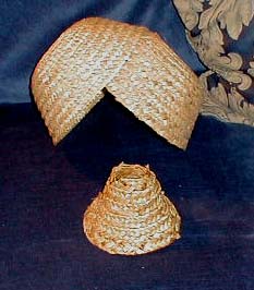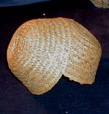 | The hat shape showing the additional cone sewn from the "extra" straw plait, to get the right shape. | ![]() |